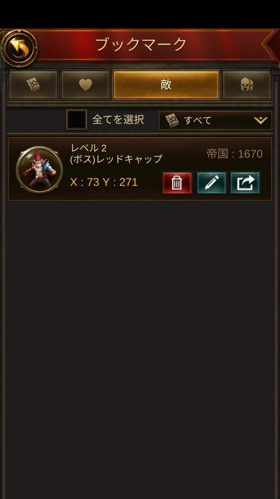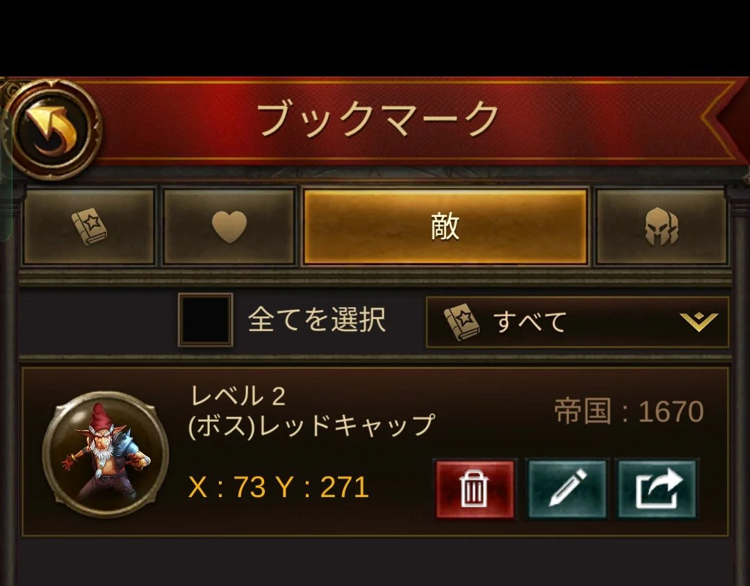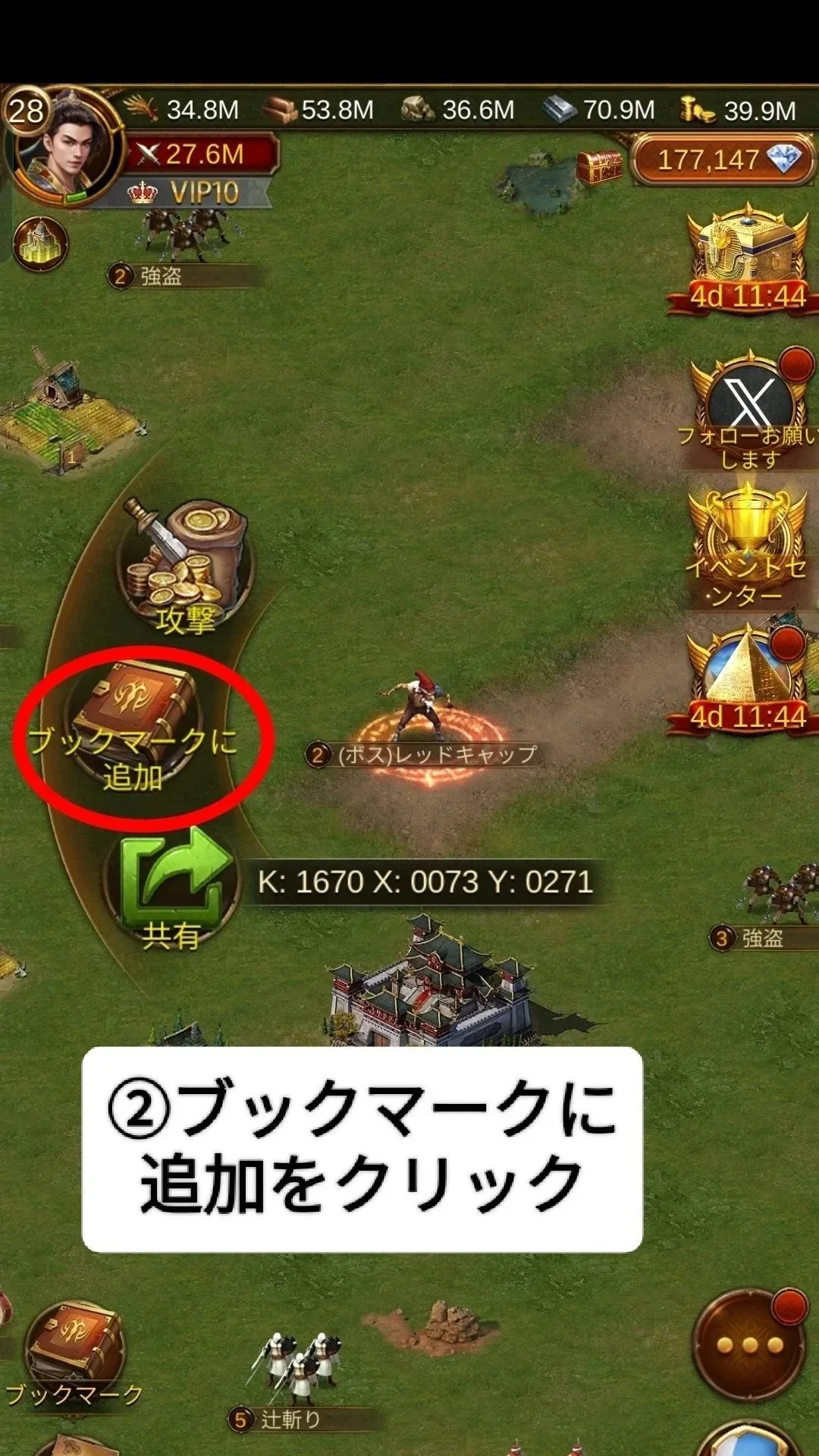まず、ブックマークしたいターゲット(城や資源地など)をクリックします。
