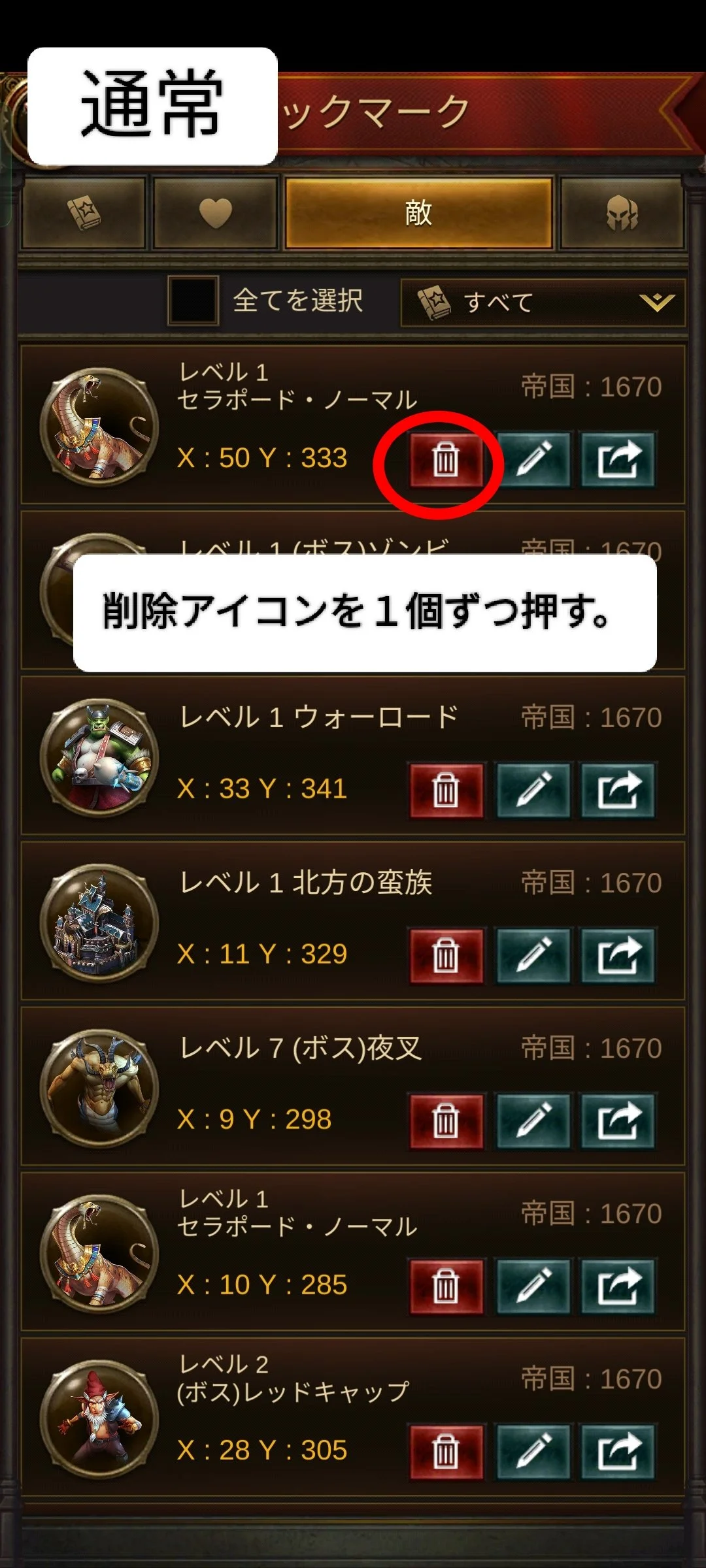 例えば、モンスターを何体かブックマークしておいたとします。もしハイブの場所や宝箱の場所なども同じリストに入っていたら、素早く見つけるのが難しくなり、戦場では慌ててしまいますよね。