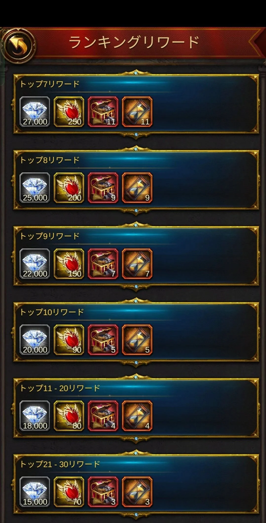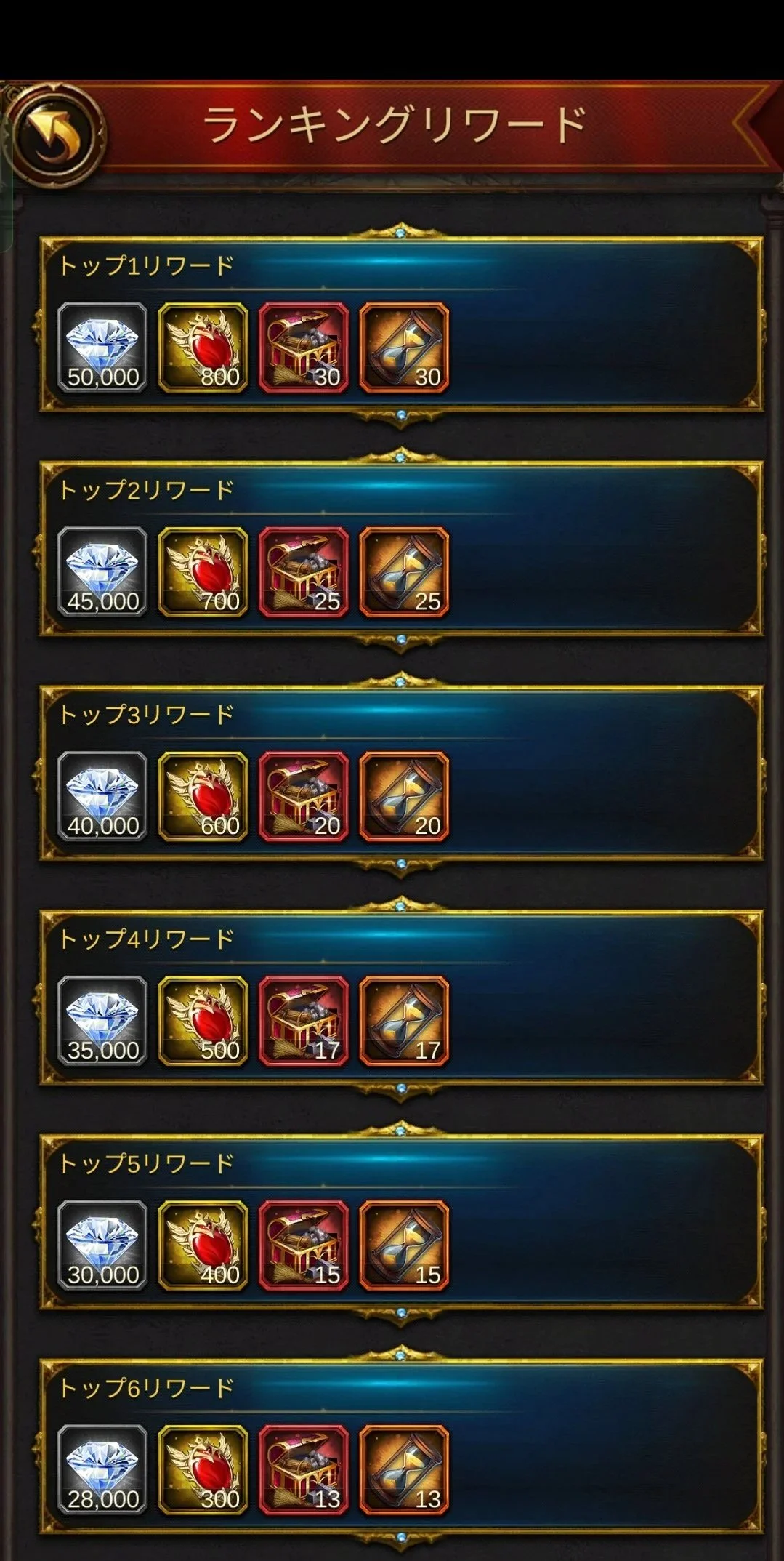 ランキング報酬でさらに豪華に! イベントのランキングで上位に入賞すると、さらに豪華なリワードがもらえます! (例:ジェム、アレース血の結晶、資源箱・ウルトラレア、24時間スピードアップなど)