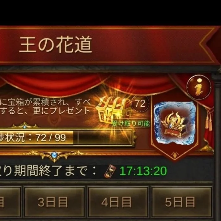 宝箱の受取期間: イベント期間が終わると、1日だけ「宝箱の受取期間」が始まります。
