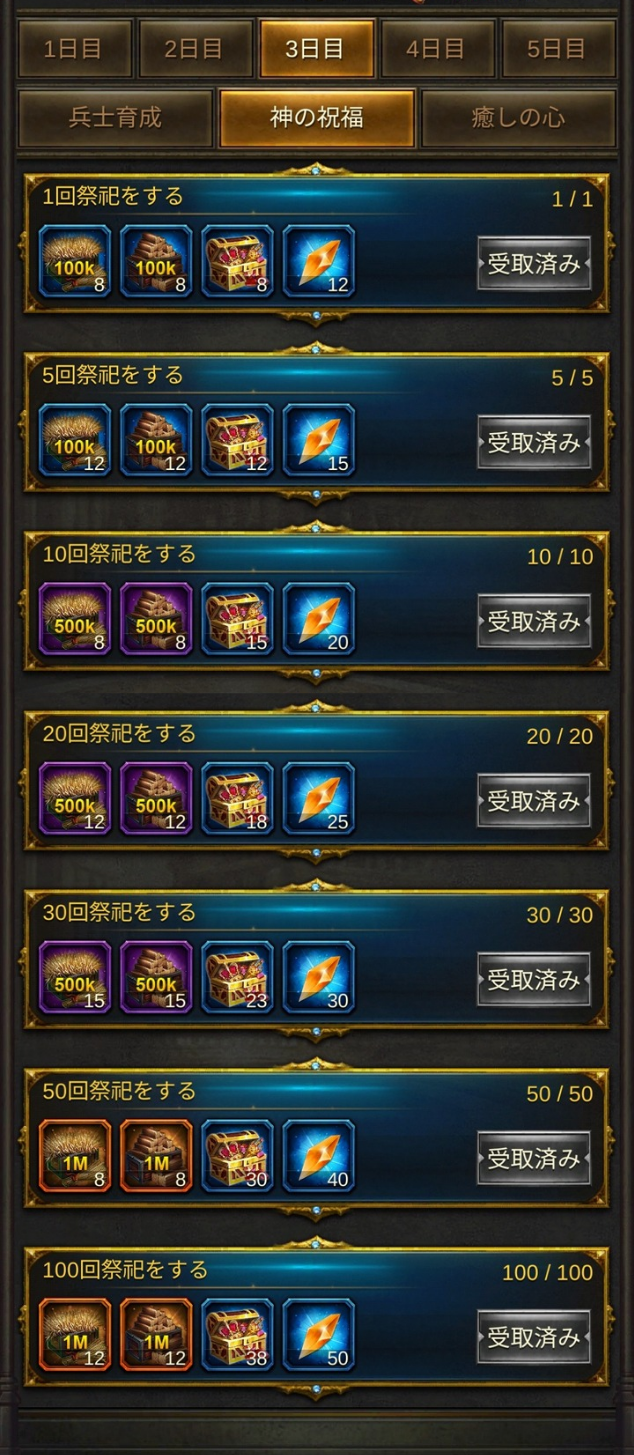 3日目:兵士育成・祭祀・回復