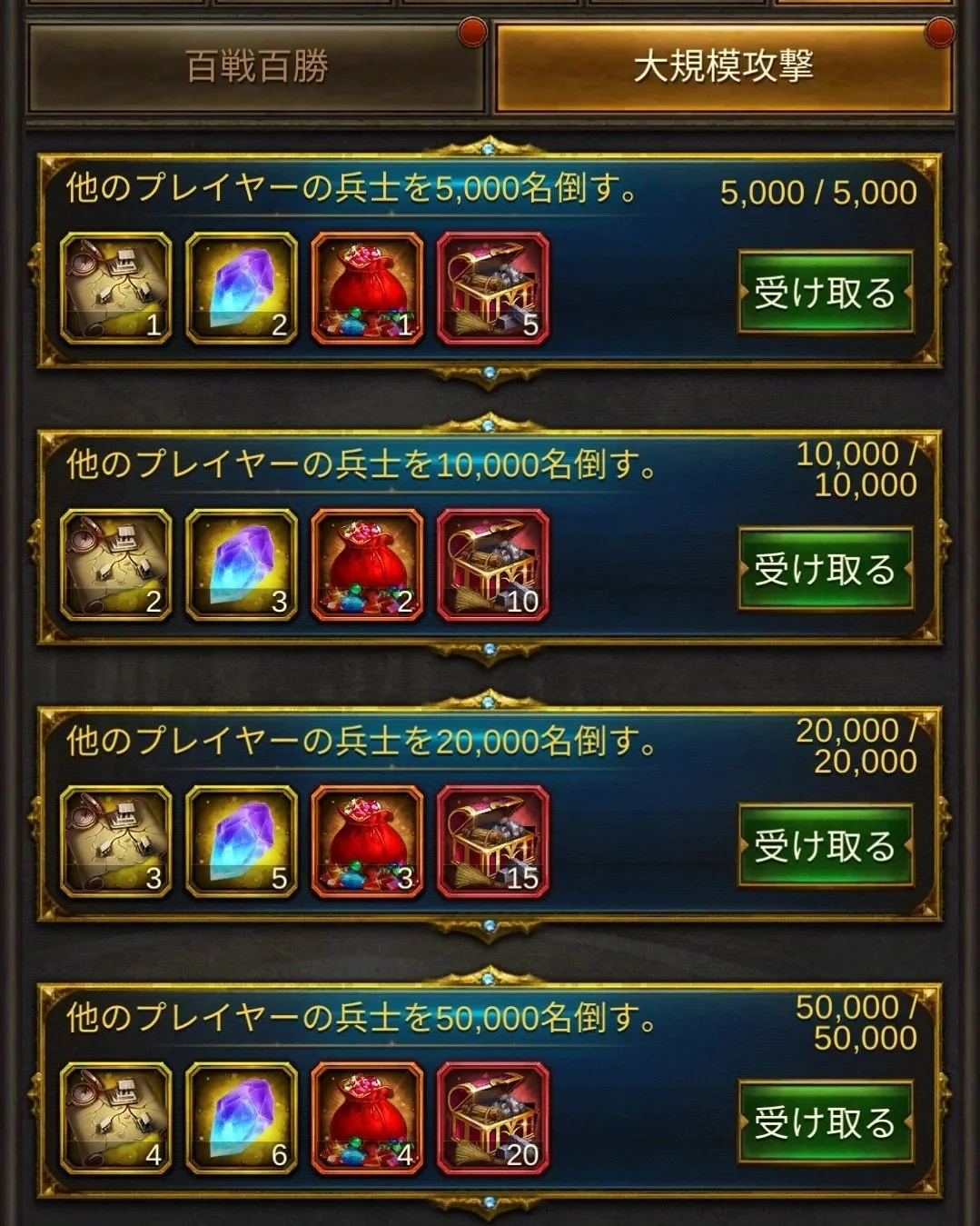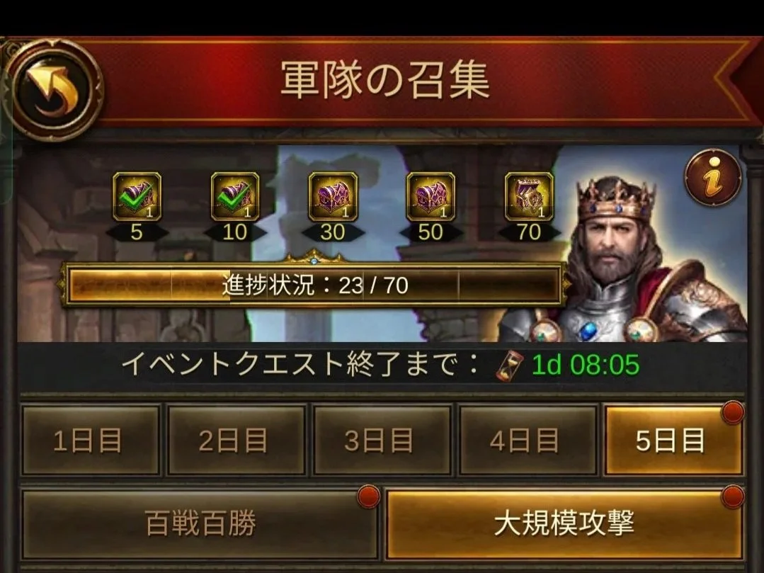 攻撃側のT1兵士が、防衛側(戦力担当のプレイヤー)によって500,000人以上倒されれば、クエストは即座にクリアとなります。