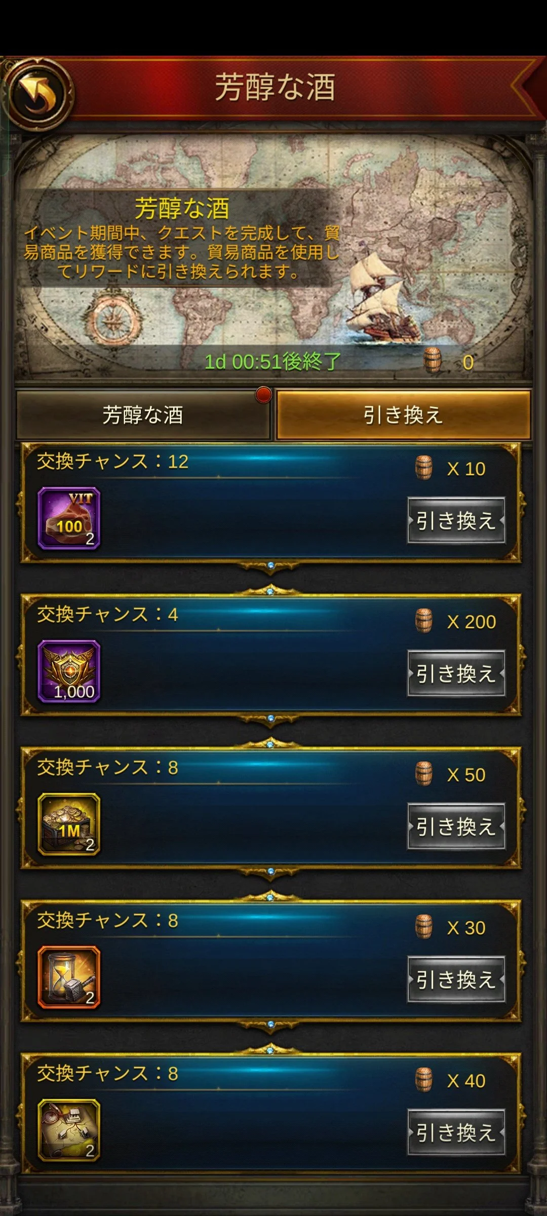 このイベントは、日頃のゲームプレイがそのまま報酬に繋がるため、効率的に進めることで多くのメリットを得られます。貿易商品をたくさん集めて、欲しいアイテムと交換しましょう。