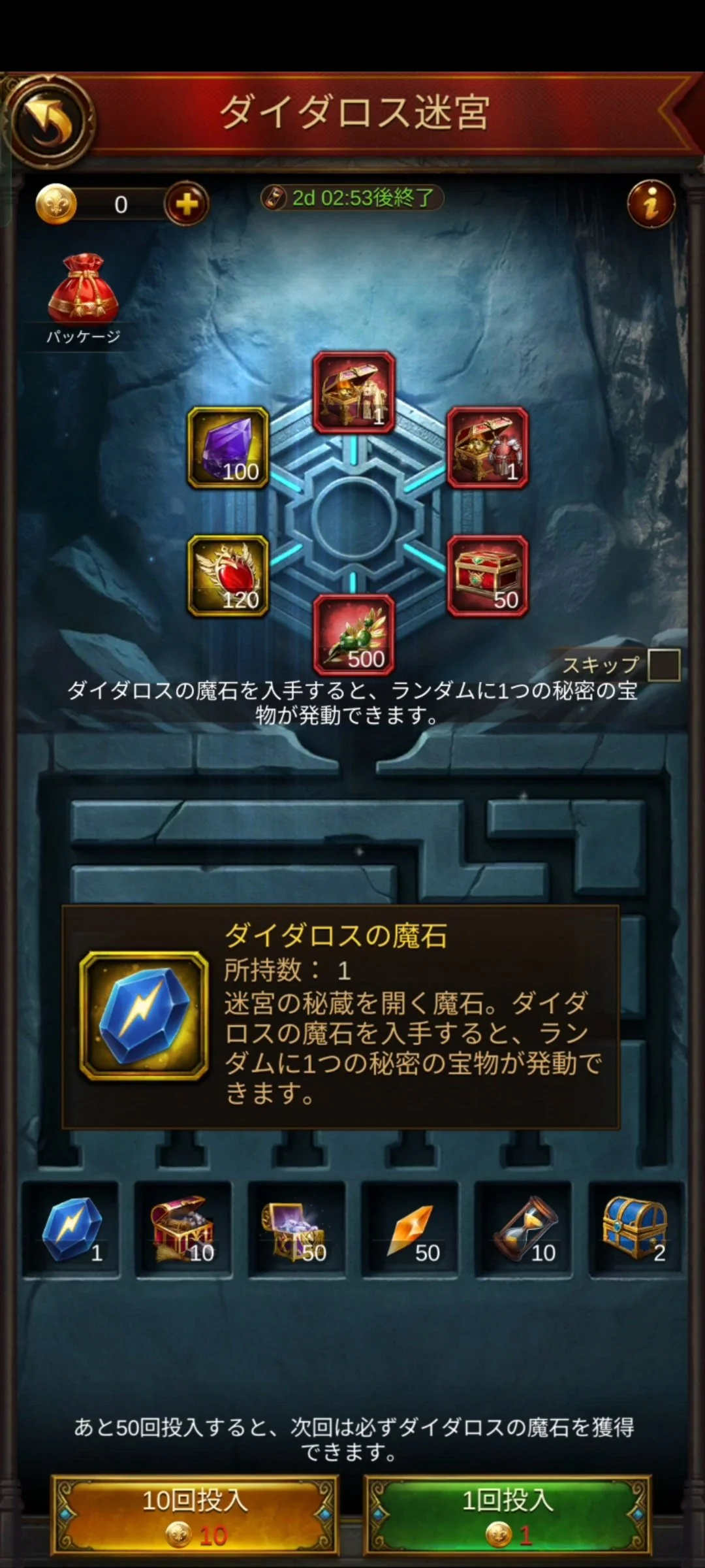 🔑 魔石で秘密の宝物をゲット! 「ダイダロスの魔石」を獲得すると、その場でランダムな「秘密の宝物」を1つゲットできます!ただし、各宝物は1回限りの獲得なので、コンプリートを目指しましょう!