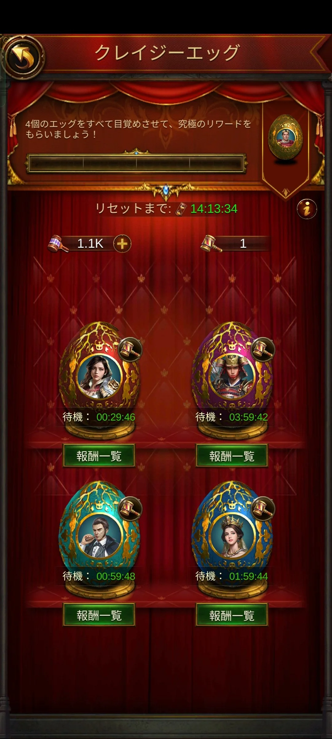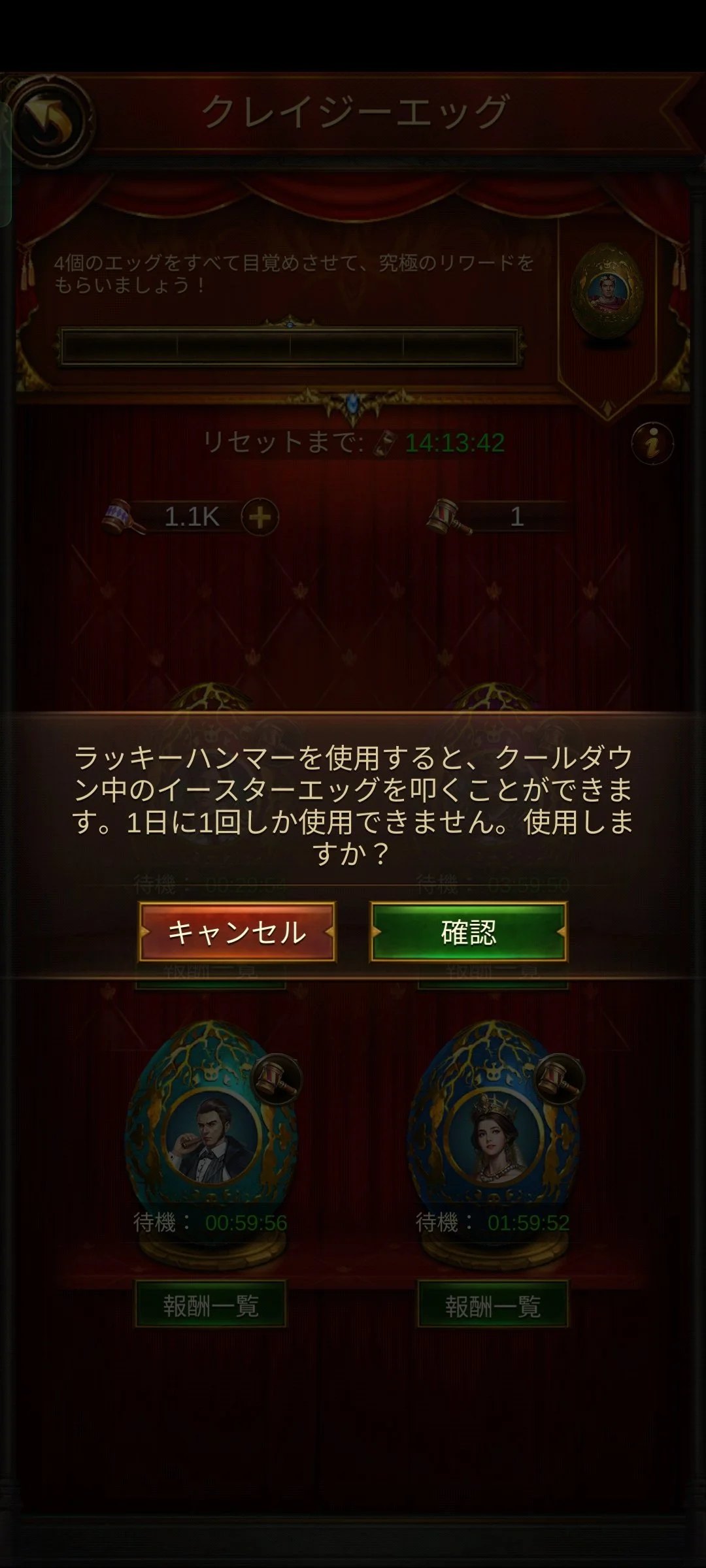 1.イベント期間中、プレイヤーがハンマーでエッグを割ると、リワードを取り出せます。エッグは全て24時間ごとに更新されます。