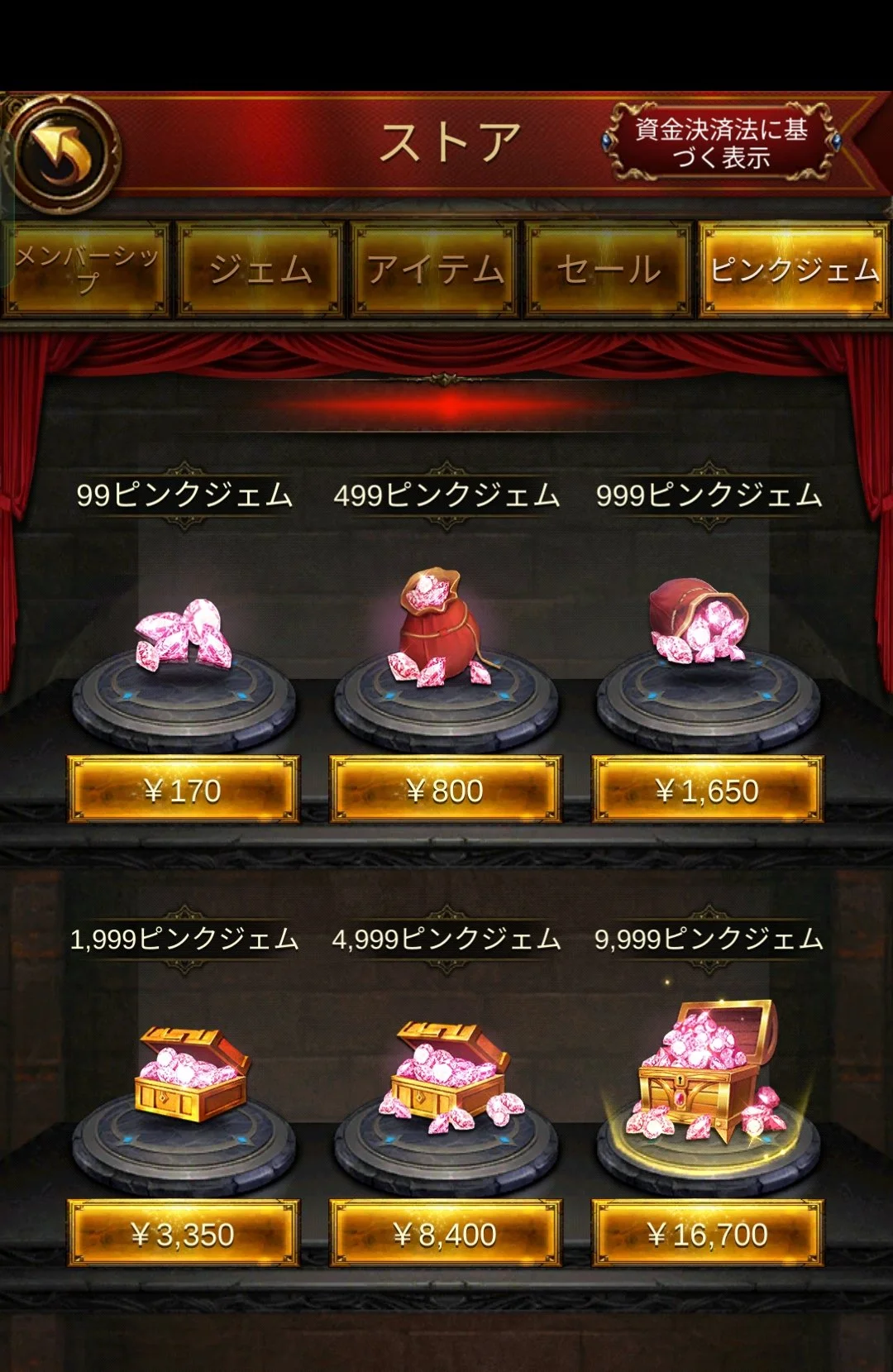 例: 999ピンクジェムのパッケージ → 2,500基礎ジェム