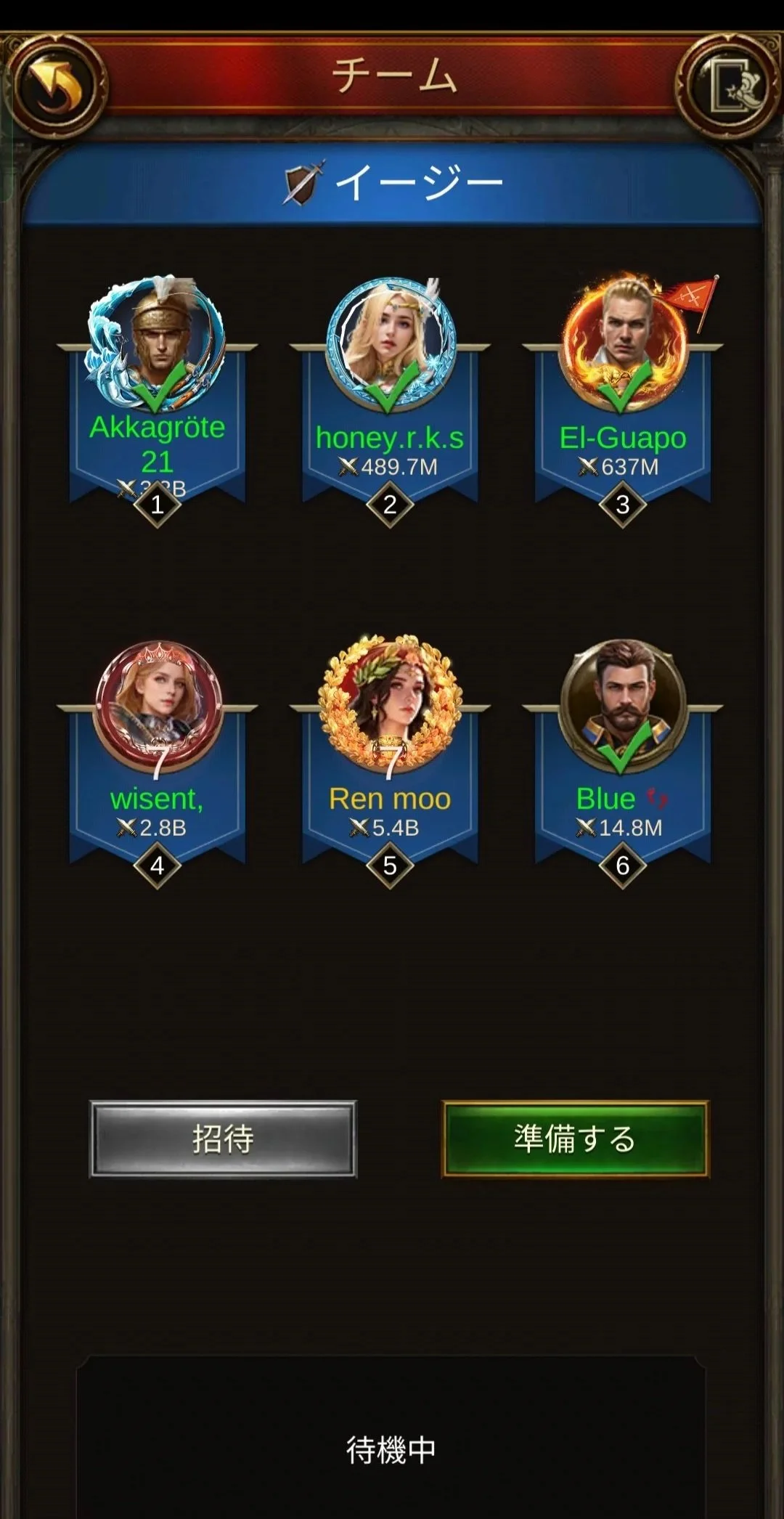 • 招待: 「招待」機能を使って、同盟メンバーやフレンドを誘い、6人のチームを結成します。
