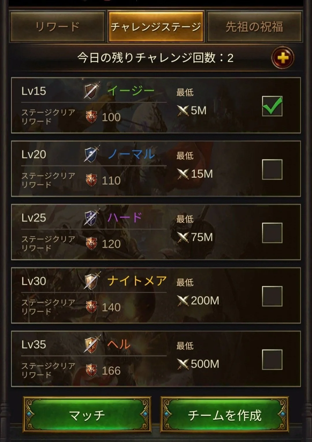 • イージー :王城Lv15以上、必要な戦力最低5M