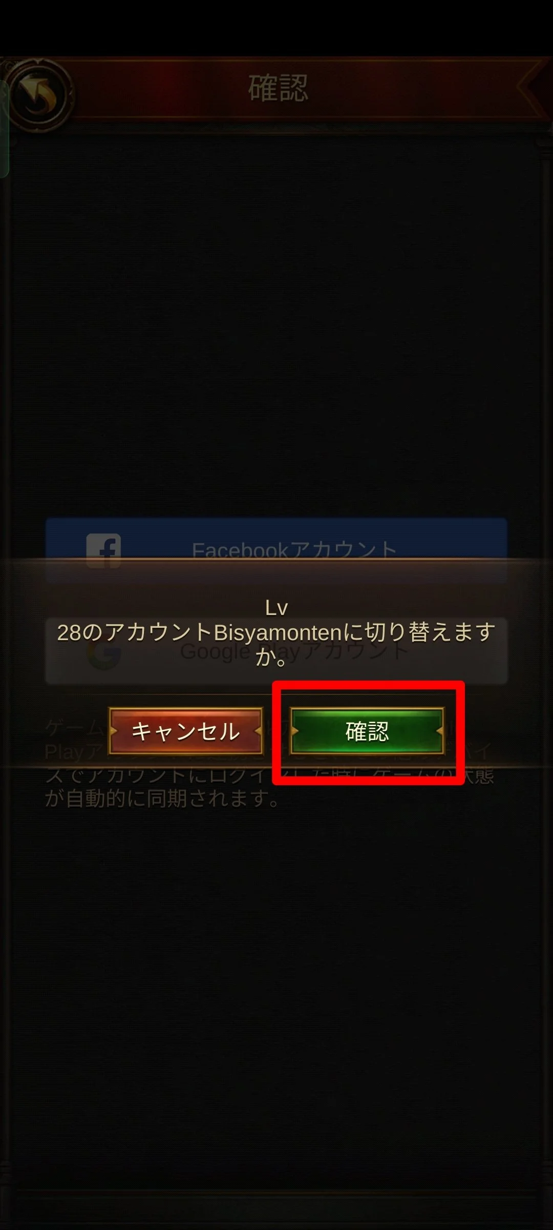 注:アカウントがリンクされているプラットフォーム(Game Center、Google、またはFacebook)のログイン情報がデバイスに正しく設定されていることを確認してください。