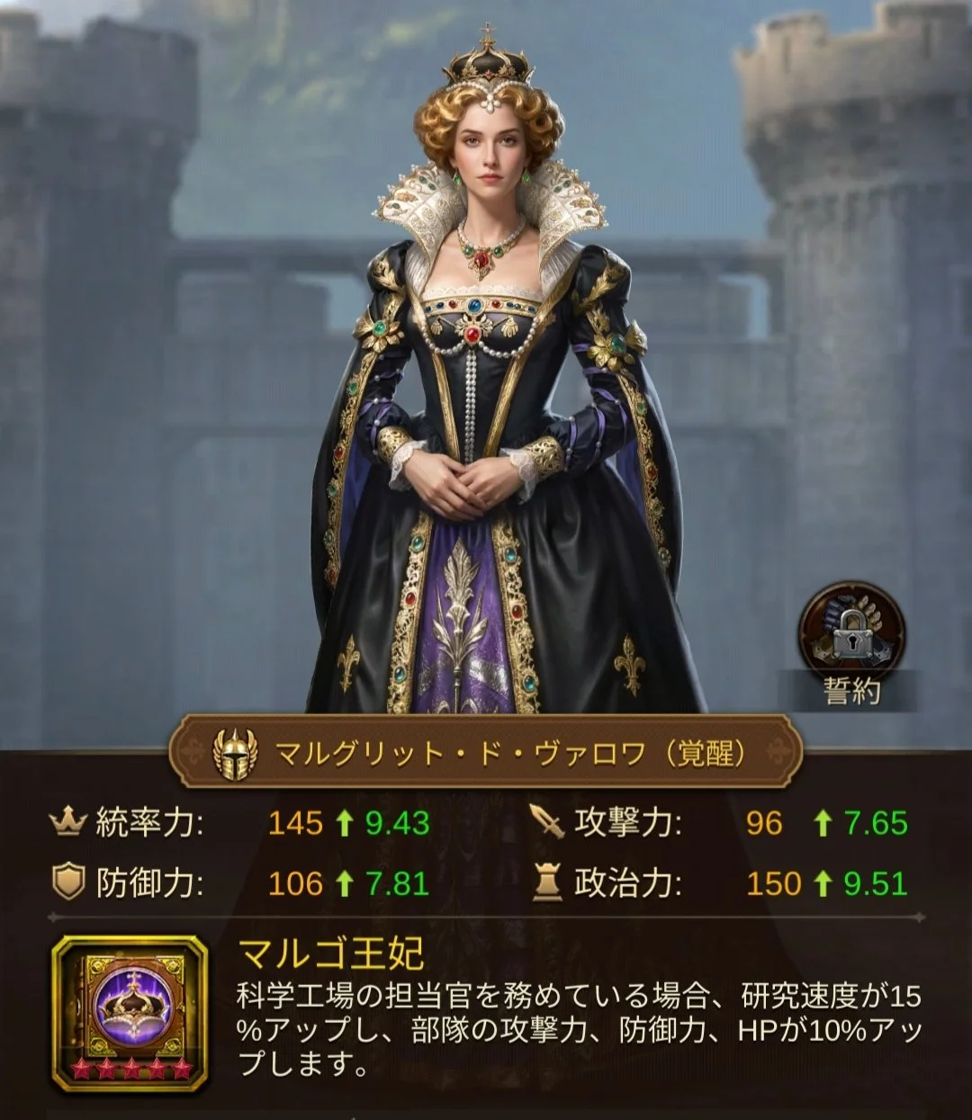 ・レベル10に達成すると、お城の飾りーカーニバル・ リオデジャネイロ或いはカーニバル・テネリフェ、自選文明装備の巻物宝箱II・王権、王城担当官の冠冕の巻物、エピック歴史の名将の引換書 (マルグリット・ ・ヴァロワ)を入手できます!