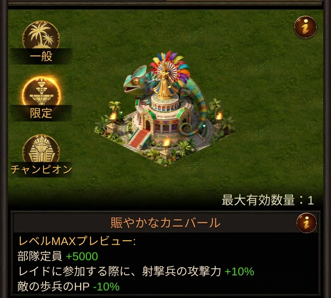 ・毎日5種類のパッケージが用意されます。パッケージには貴重な金のヘルメット、軍事理論、軍事戦術の素材自選箱、戦績の宝石、栄光の金枝、製造達人認定証 、獣血の結晶、エピック装備宝箱(栄光勲章)、属州都市の手がかり宝箱などのレアアイテムが含まれてい