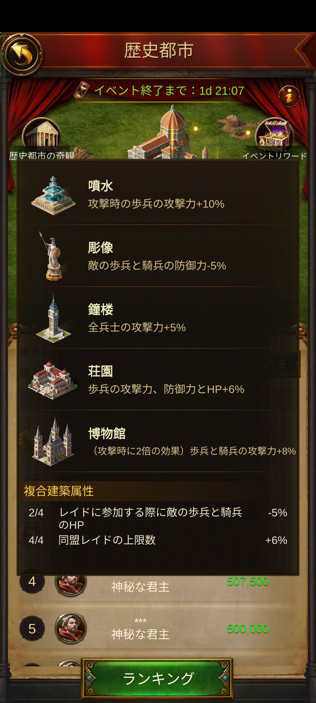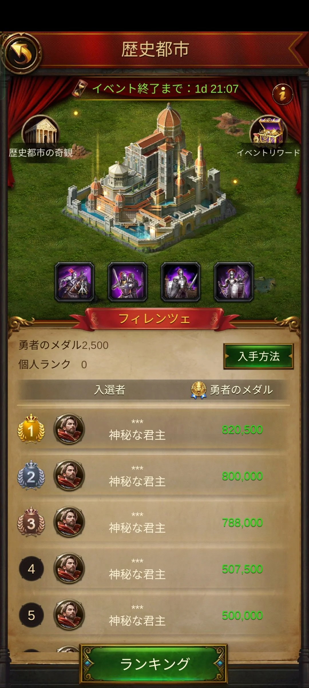 ご注意:同じ世界歴史都市は1名の君主様につき一回のみ獲得できます。