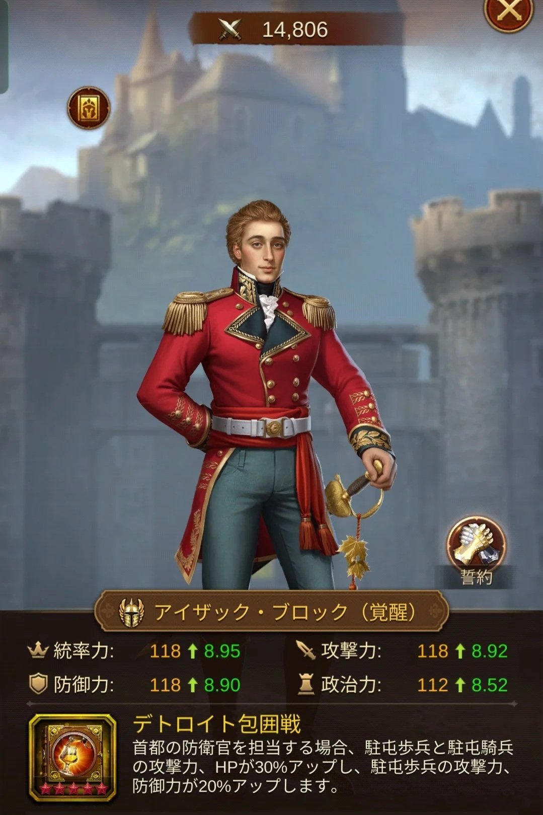 - 特性2: 首都防衛時、歩兵を含む全兵種の攻撃力を+6%底上げします。