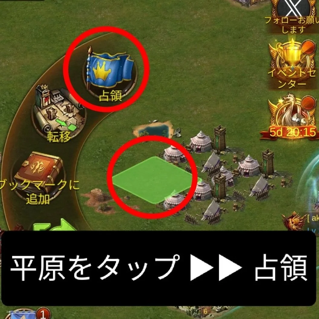 行軍で城の外へ出す: ワールドマップ上のどこでもいいので平原をタップ、占領することでキャンプできます。このようにして、なるべく多くの兵士を逃がしましょう!