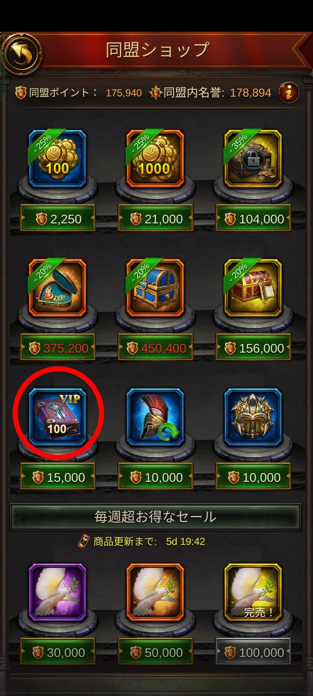 - 同盟ポイントを消費して同盟ショップで購入します。